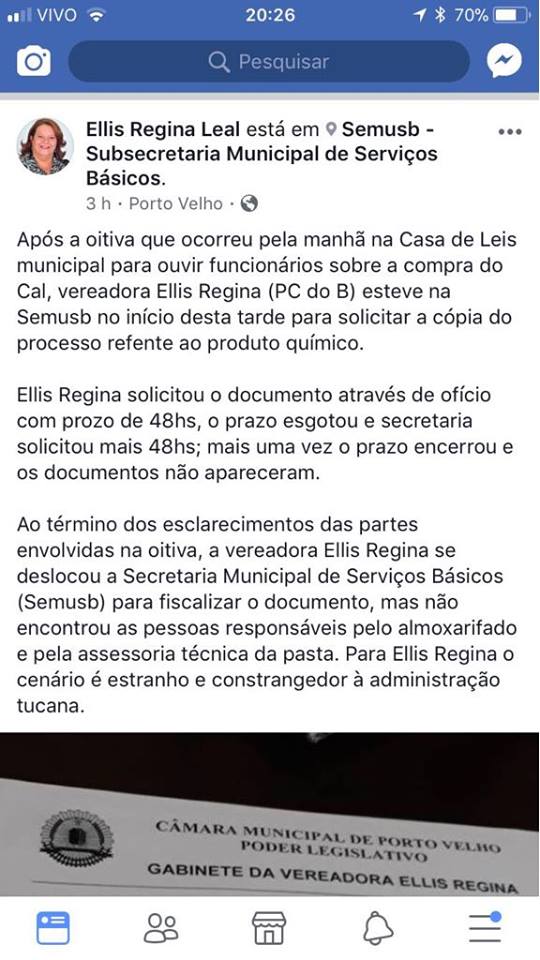 Após publicação da denúncia pelo Rondoniaovivo sobre as suspeitas que recaiam sobre o quantitativo de uma compra de 15.753 sacos de cal em novembro de 2017 e da não existência deste material no almoxarife da Semusb, os vereadores Alekis Palitot, Elis Regina e Cristiane Lopes entraram na investigação do suposto desmando administrativo.