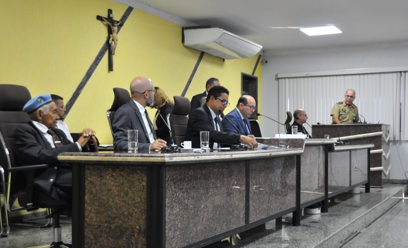 Indicação do Vereador Professor Aleks Palitot, a sessão especial realizada na manhã desta terça-feira (27), na Câmara Municipal, homenageou aos Soldados da Borracha e concedeu o título de Amigo de Porto Velho ao General de Brigada José Eduardo Leal de Oliveira, Comandante da 17ª Brigada de Infantaria de Selva. “As homenagens, justa homenagem a estes heróis de nossa história são formas de reconhecer em vida o valor destes bravos guerreiros”, afirmou Palitot.
