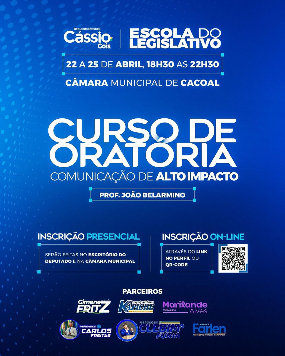 O deputado Cássio Gois reforçou a importância da iniciativa, “comunicação é poder, e essa capacitação gratuita é uma oportunidade para os cidadãos de Cacoal e região se desenvolverem e alcançarem melhores resultados nas suas carreiras profissionais”, disse.
