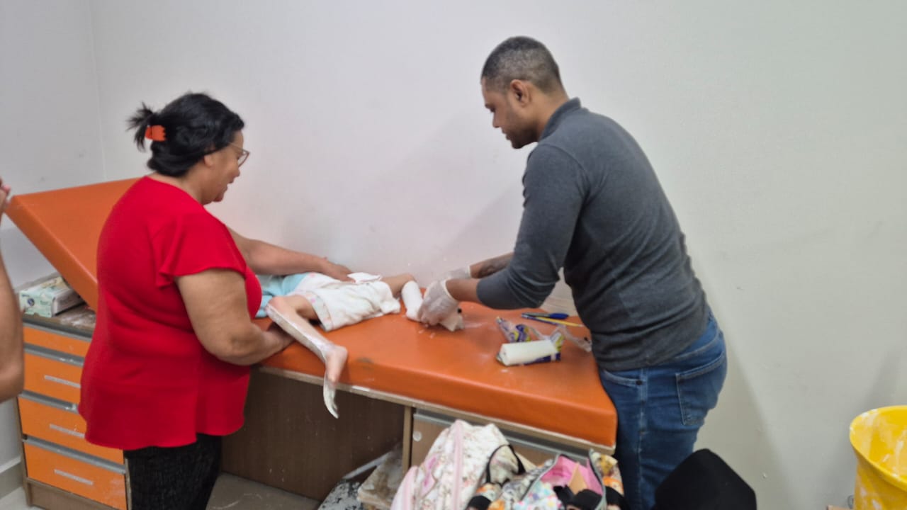 Adalto Nunes do Nascimento Tavares, técnico ortopédico e responsável pela oficina, explicou que profissionais de Barretos estão integrados ao trabalho neste momento, reforçando a equipe.