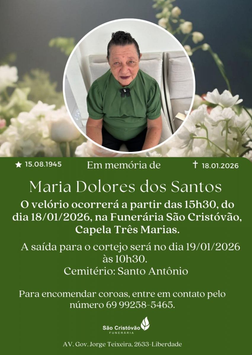 Dona Dolores era servidora inativa da Câmara Municipal de Porto Velho e enfrentava problemas de saúde há várias semanas.