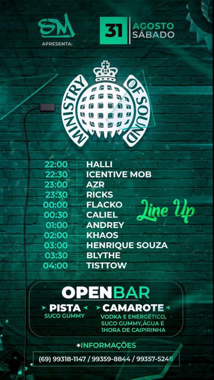 Vem aí mais uma festa de qualidade Open Bar que você tanto espera organizada pela SM produções, é a 3ª Edição da ‘Ministry Of Sound’ que acontece no proximo sábado (31) em Porto Velho.