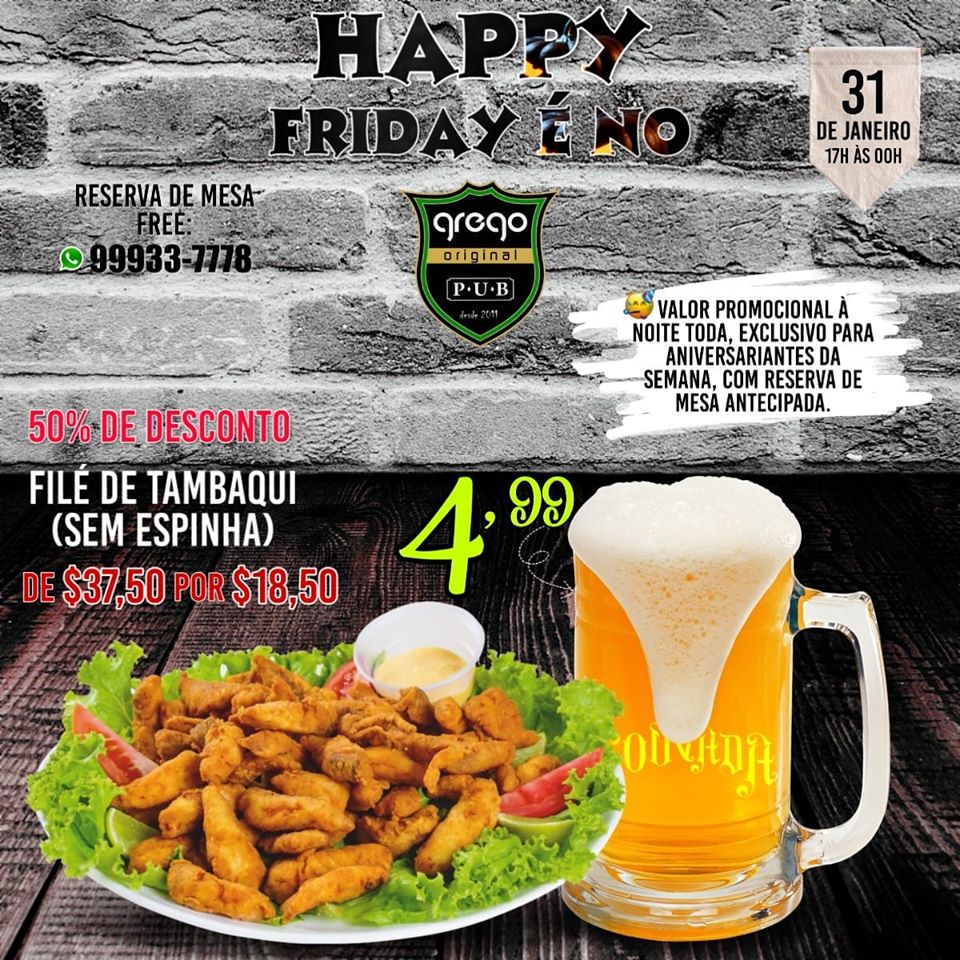 Toda sexta tem happy friday das 17:00 às 00:00 e aos sábados a tradicional feijuka com rock das 11:00 às 19:00, não perca!