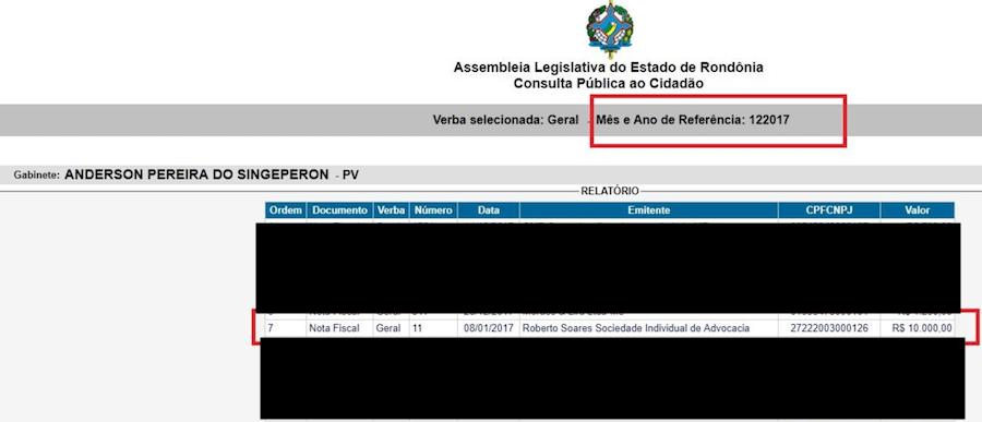 O deputado estadual Anderson do Singeperon contratou o escritório de advocacia de seu irmão para cuidar de sua assessoria jurídica. Nada demais, exceto pelo fato de que o escritório vinha sendo pago com verba parlamentar. Em 2017, a Roberto Soares Sociedade Individual de Advocacia recebeu ao menos R$ 80 mil do gabinete do parlamentar. Os pagamentos constam no portal da Transparência da Assembleia Legislativa de Rondônia.