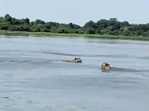 Fotos que flagraram três onças nadando no rio Guaporé viralizaram nas redes sociais no fim de semana.