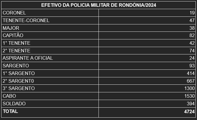 Até o momento, sexto ano da gestão do Coronel Marcos Rocha, não tivemos nenhum concursos para soldados e, consideração que nesse período um contingente de aproximadamente quinhentos membros da corporação foram para a reserva remunerada, temos um efetivo aproximado a quatro mil e setecentos integrantes o que é demonstrado nas informações oficiosas abaixo: