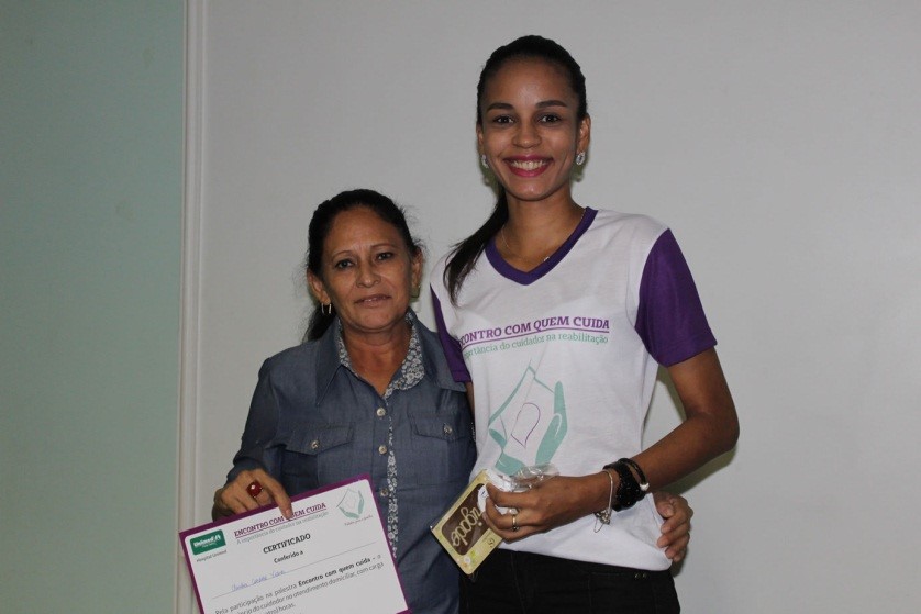Angelina também participou do evento, profissionais e outros cuidadores ficaram admirados com sua evolução. “Ela veio porque muitas pessoas a conheciam, mas não a viam mais aqui no hospital, queria mostrar a evolução e como o trabalho deles tem surtido efeito positivo em nossas vidas”, finaliza a mãe cuidadora.