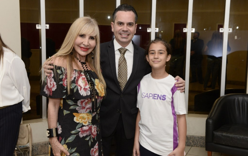 Andrey Cavalcante ao lado da mãe Lourdinha Cavalcante e da sobrinha Sophia Cavalcante