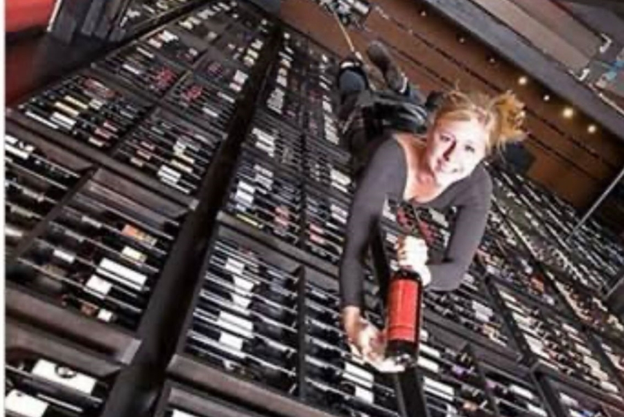 A maior adega vertical que existe no mundo. Tem 13 metros de altura, é toda de vidro. Para pegar o vinho da última prateleira, a garçonete tem que ser içada! E assim surgiu a expressão anjos do vinho. Essa adega fica em Las Vegas, uma cidade com oito milhões de hóspedes de hotel por ano e uma reputação de ter o que há de melhor em design de interiores,Quando o Mandalay Bay Resort Casino abriu seus 3.700 quartos, levou seu interior para novas alturas, com a instalação da adega de vinho mais alta do mundo.