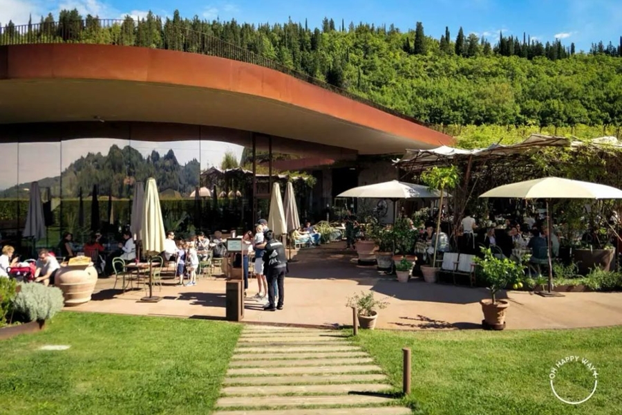 Desde que foi inaugurada é considerada um exemplo de inovação e autenticidade Primeiro, porque foi construída inteiramente com materiais locais. Segundo, porque sua cantina foi projetada para garantir de forma natural a temperatura adequada para a conservação dos vinhos. E, terceiro, por sua arquitetura visionária, cujas formas orgânicas fazem com que a construção se mescle e quase desapareça em meio às colinas da região.Ao mesmo tempo, o seu amplo terraço permite contemplar ás plantações de uvas sangiovese, Canaiolo,Colorino, Malvasia Nera e Mammolo.