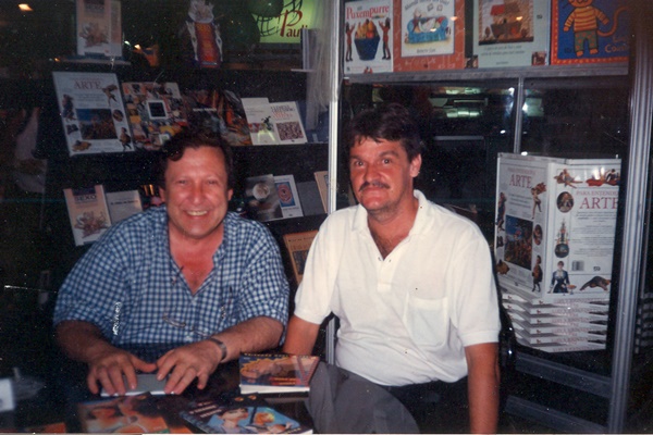 O poeta Selmo com o escritor Pedro Bandeira, na 1ª Feira Internacional do Livro em Recife, PE, 3 a 8 de junho de 1997 (Foto: “Bahia”)