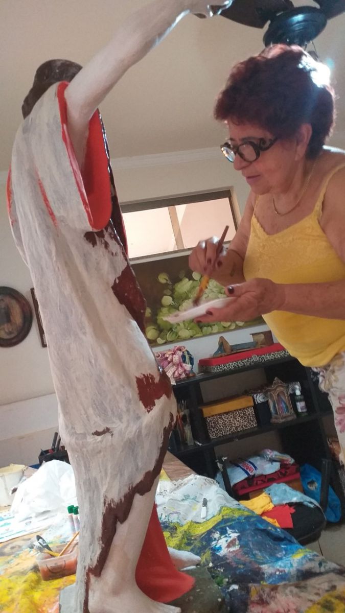 Faço muito trabalho voluntariado em asilos, e comunidades carentes. Gosto de restaurar imagens, já fiz várias para a igreja.