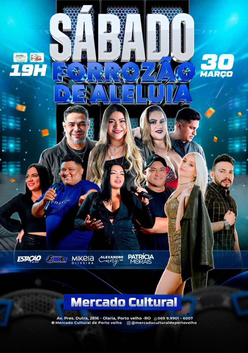"Vai ter Estação do Forró, Forró dos Três, Mikeia Oliveira e Patrícia Morais no 'Forrozão de Aleluia', que vai acontecer neste sábado, dia 30, a partir das 19h, no Mercado Cultural de Pvh", enfatizou o empresário Sinezio Tapajós, permissionário do box Dourado do Madeira, ao divulgar agenda dos eventos gastronômicos e musicais do sábado de Aleluia e domingo de Páscoa.