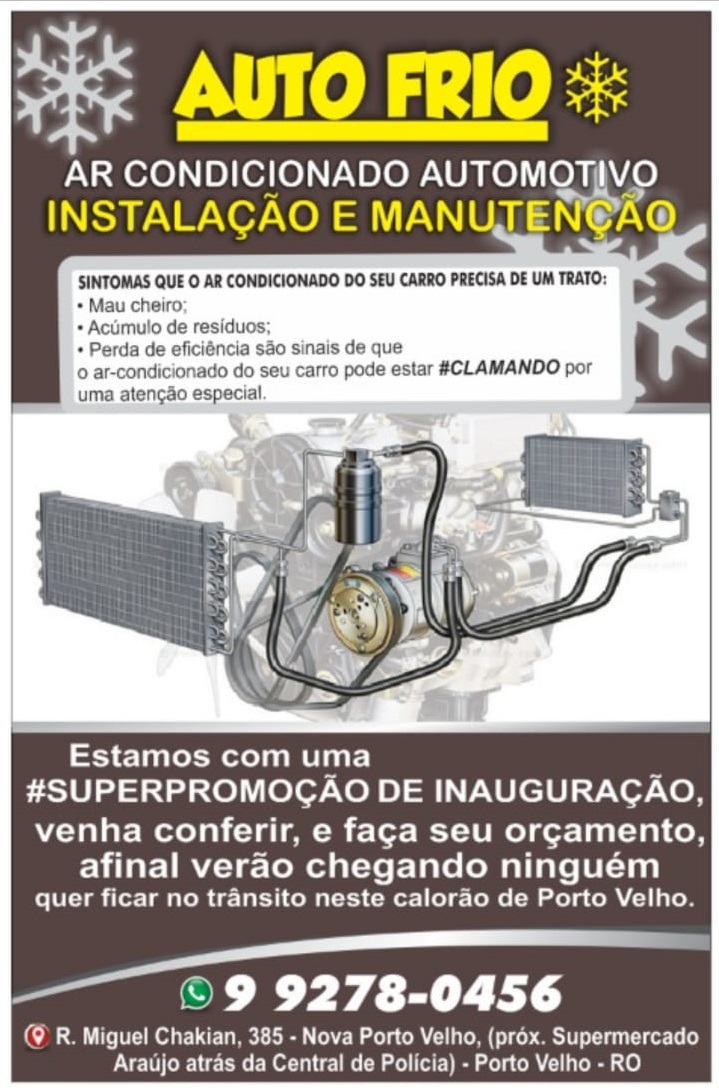 A Auto Frio está fazendo uma super promoção de inauguração. Faça seu orçamento, afinal, verão chegando e ninguém quer ficar no trânsito neste calorão de Porto Velho.