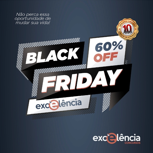 BLACK FRIDAY Excelência Concursos. 60% de descontos para cursos Preparatórios para Concursos Públicos.
