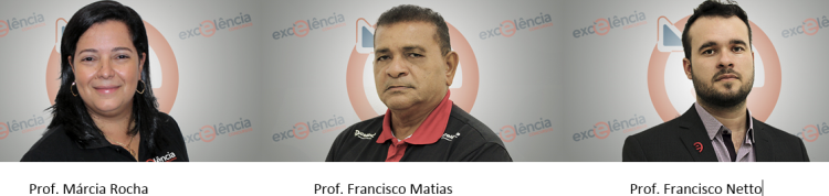 O corpo docente do Excelência Concursos é formado por grandes profissionais das suas respectivas áreas, ocupam cargos de relevância na administração pública e em cargos estratégicos no governo, por exemplo: Juiz, Promotor, Controlador Geral, Auditor, Delegado, etc.
