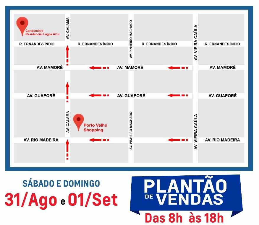 Você pode conferir e tirar suas dúvidas neste Sábado (31) e Domingo (01). O plantão irá acontecer das 8h às 18h no próprio Condomínio que fica entre a Av. Calama e Rua: Ernandes Índio. Então não perca tempo e corre pra lá.