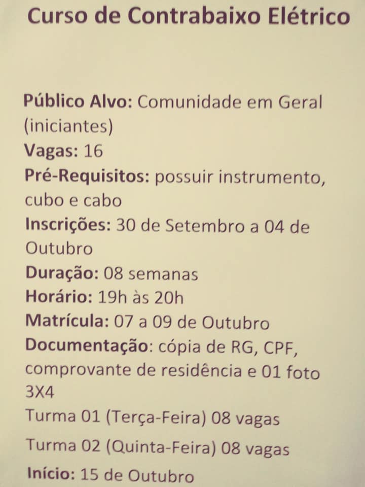 - Levar contrabaixo e cubo (Não precisa ler partitura)