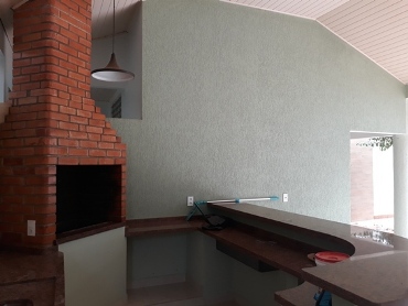 Na parte inferior são duas salas, uma cozinha, dois quartos, sendo um suíte, área de lazer completa com churrasqueira e piscina, garagem para 4 carros.