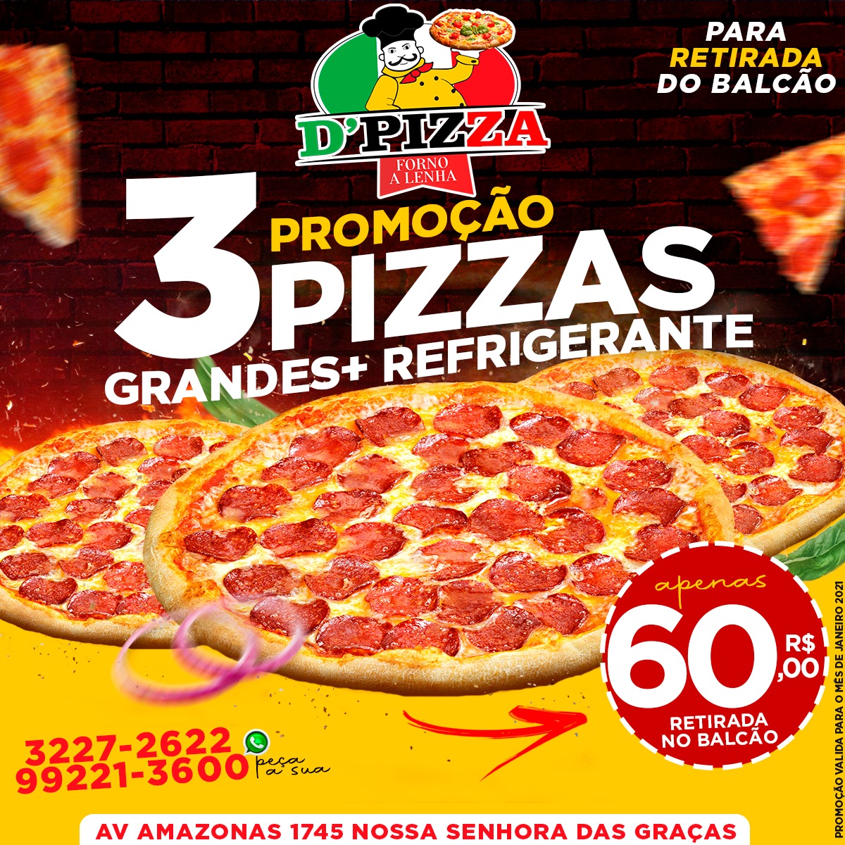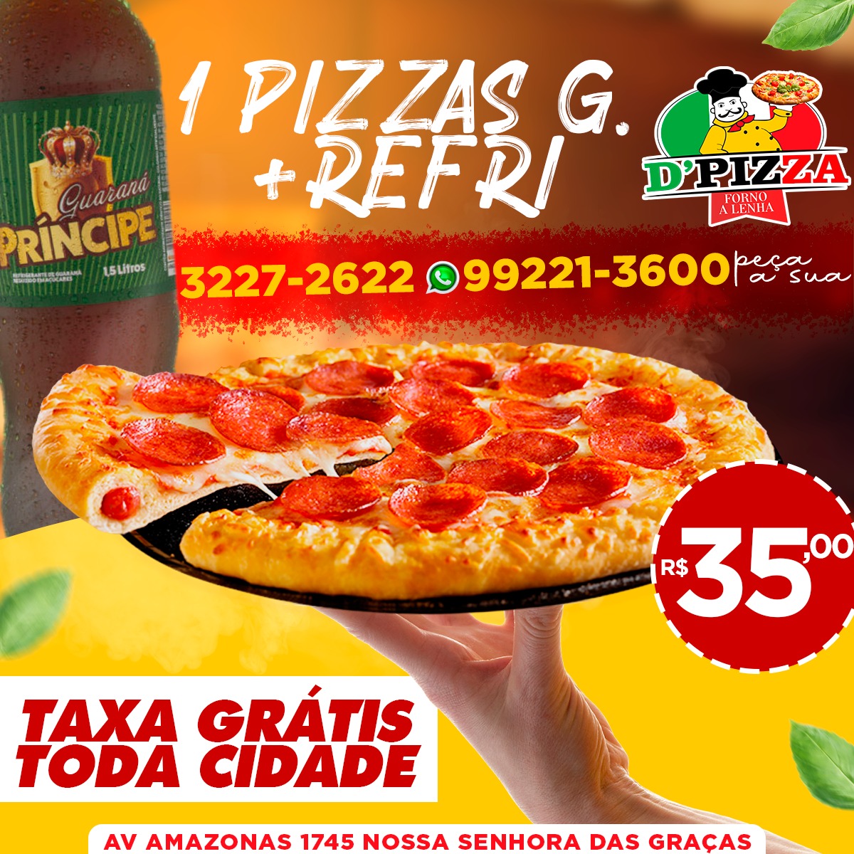 A D’Pizza fica localizada na Avenida Amazonas, 1745.