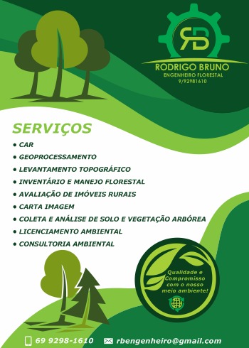 Foi pensando na qualidade e compromisso com o meio ambiente, que o Engenheiro Florestal, Rodrigo Bruno, investiu na sua carreira e oferece diversos serviços para Porto Velho (RO) e região.