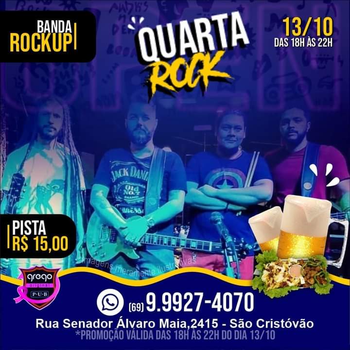 Com show da banda RockUp, hoje é dia do "Camarote Vip Open Chopp Pilsen" e rodízio de petisco no tradicional pub porto-velhense, o Grego Original