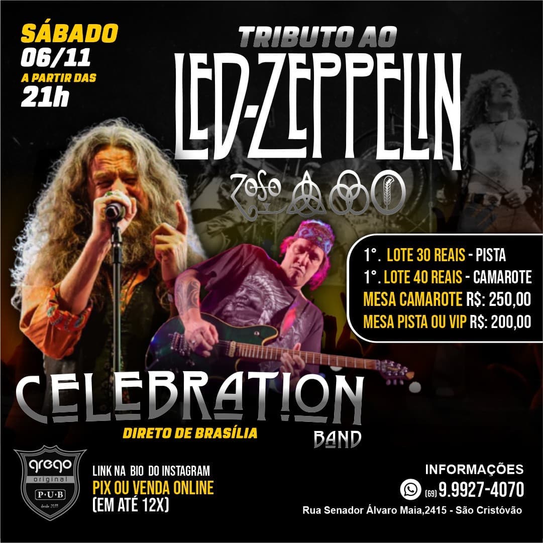No dia 06 de novembro às 21h, acontece o show inédito com Tributo da banda inglesa Led Zeppelin no Grego Original em Porto Velho. A banda é composta por renomados músicos entre eles, o Kico Peres (guitarrista) ex integrante da Banda Natiruts.