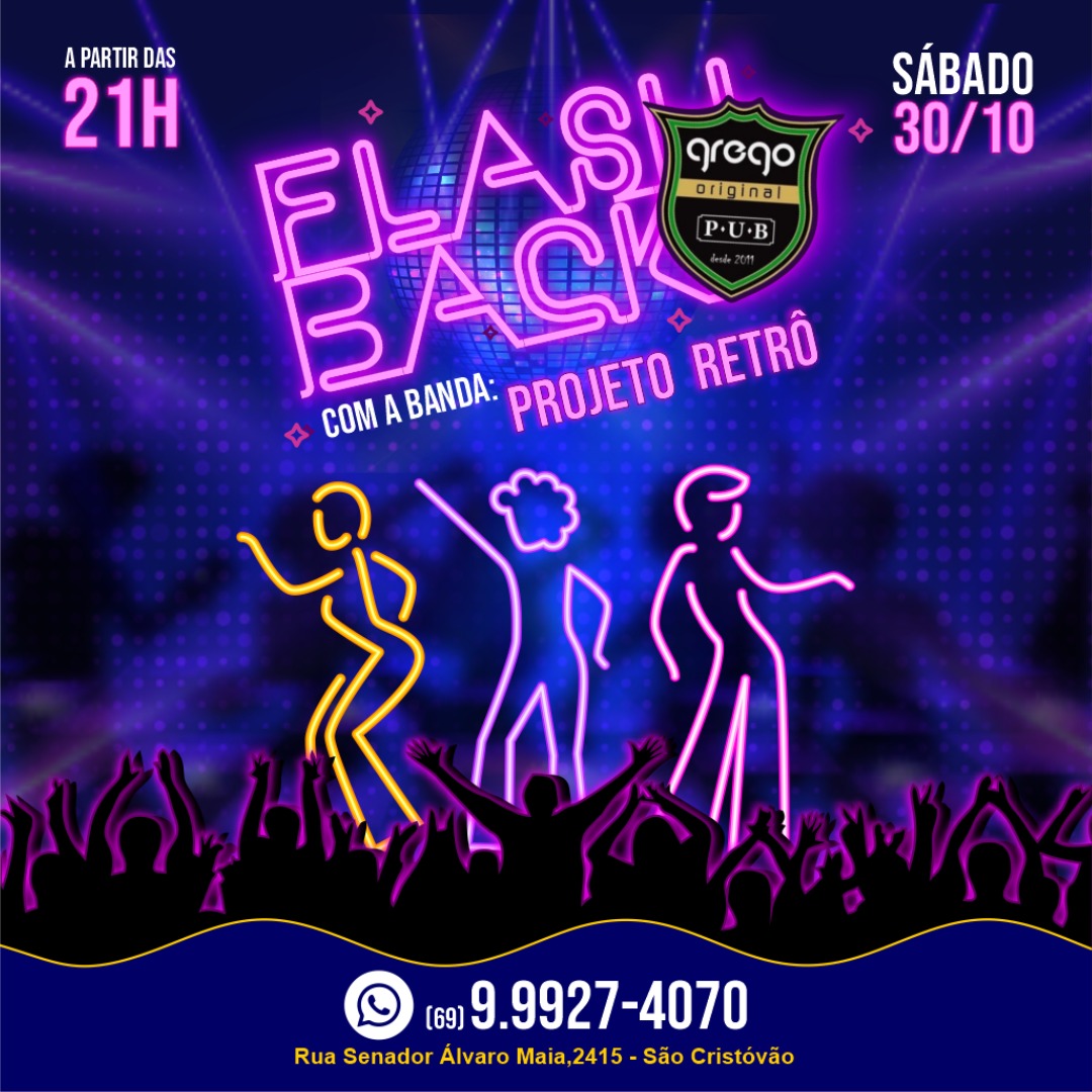 A partir das 21h, apresentação da banda Projeto Retrô.