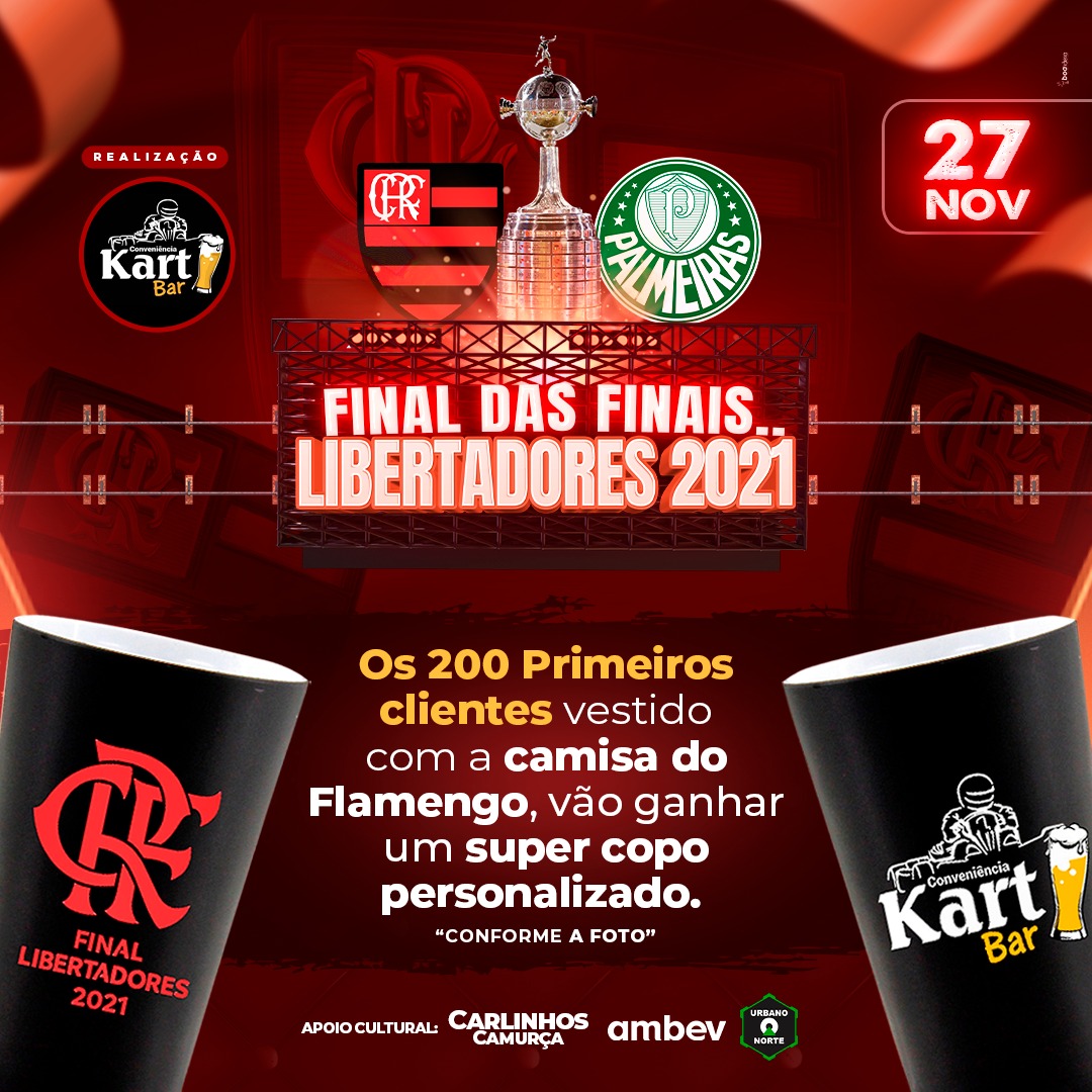 Neste sábado (27), o Kart Bar irá transmitir a final das finais Libertadores 2021, entre Flamengo e Palmeiras, em Porto Velho. Para agitar a torcida rubro-negra, a conveniência vem preparando brindes para os clientes.