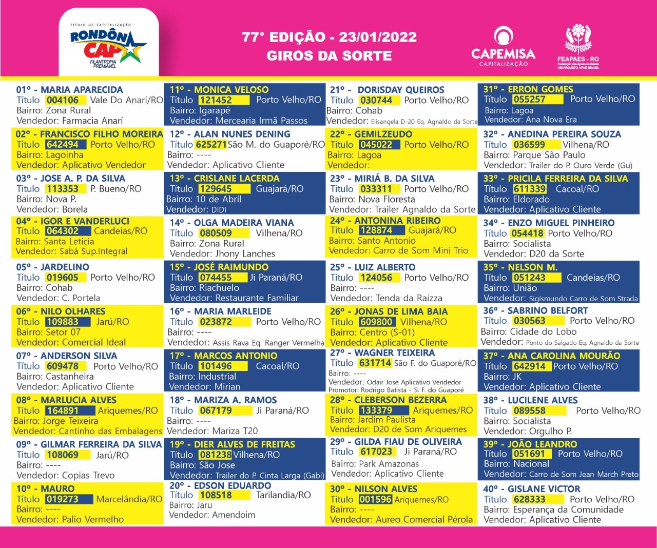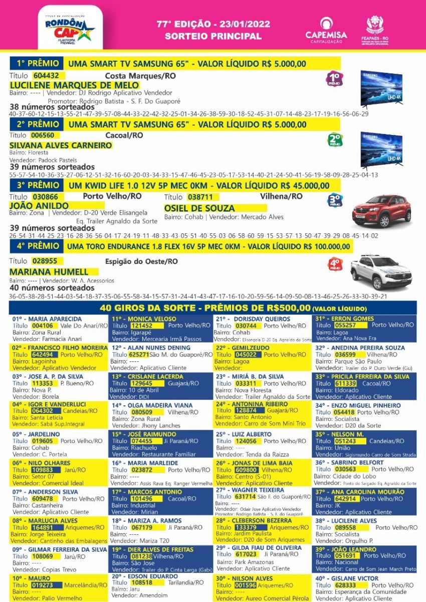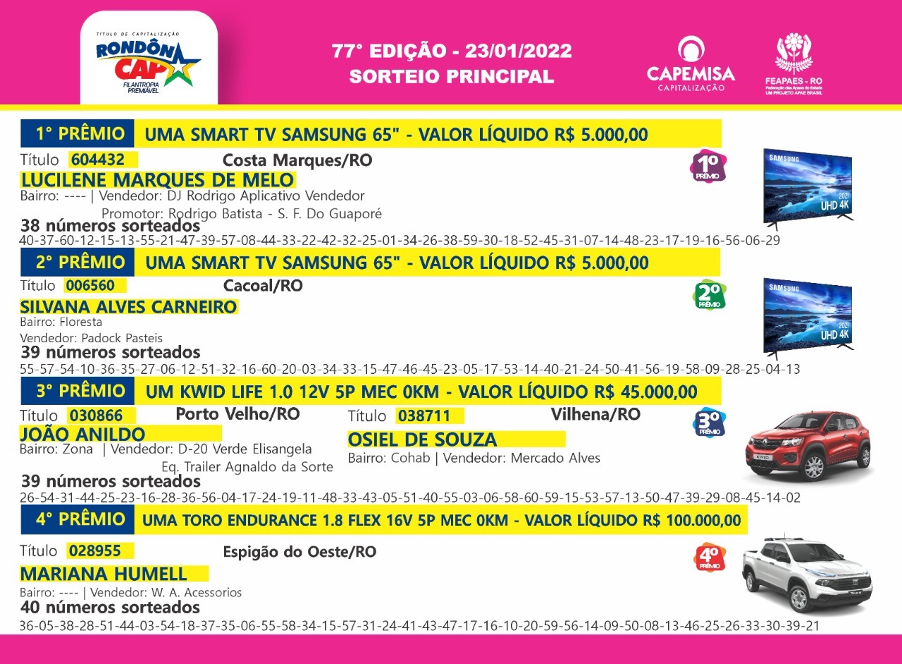 Quem ganha no Rondôncap todo mundo vê, conheça agora os ganhadores do último domingo: