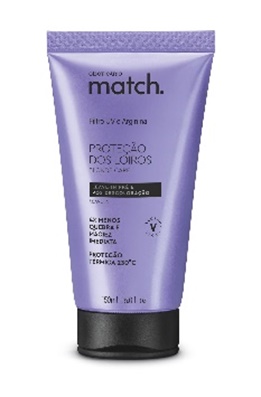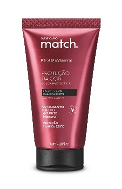 A linha Match Proteção da Cor tem ação de proteção contra a oxidação dos fios e agressões externas, além de auxílio na manutenção da cor por meio do filtro UV. Por ser enriquecida de vitaminas, que são essenciais para manter a fibra capilar nutrida e hidratada, evita o ressecamento e a quebra e devolve a maciez e o brilho aos fios tingidos. Sua fórmula inteligente tem ação antidesbotamento, que fixa a tintura no interior da fibra capilar enquanto hidrata profundamente os fios, garantindo cor prolongada por até 40 dias.