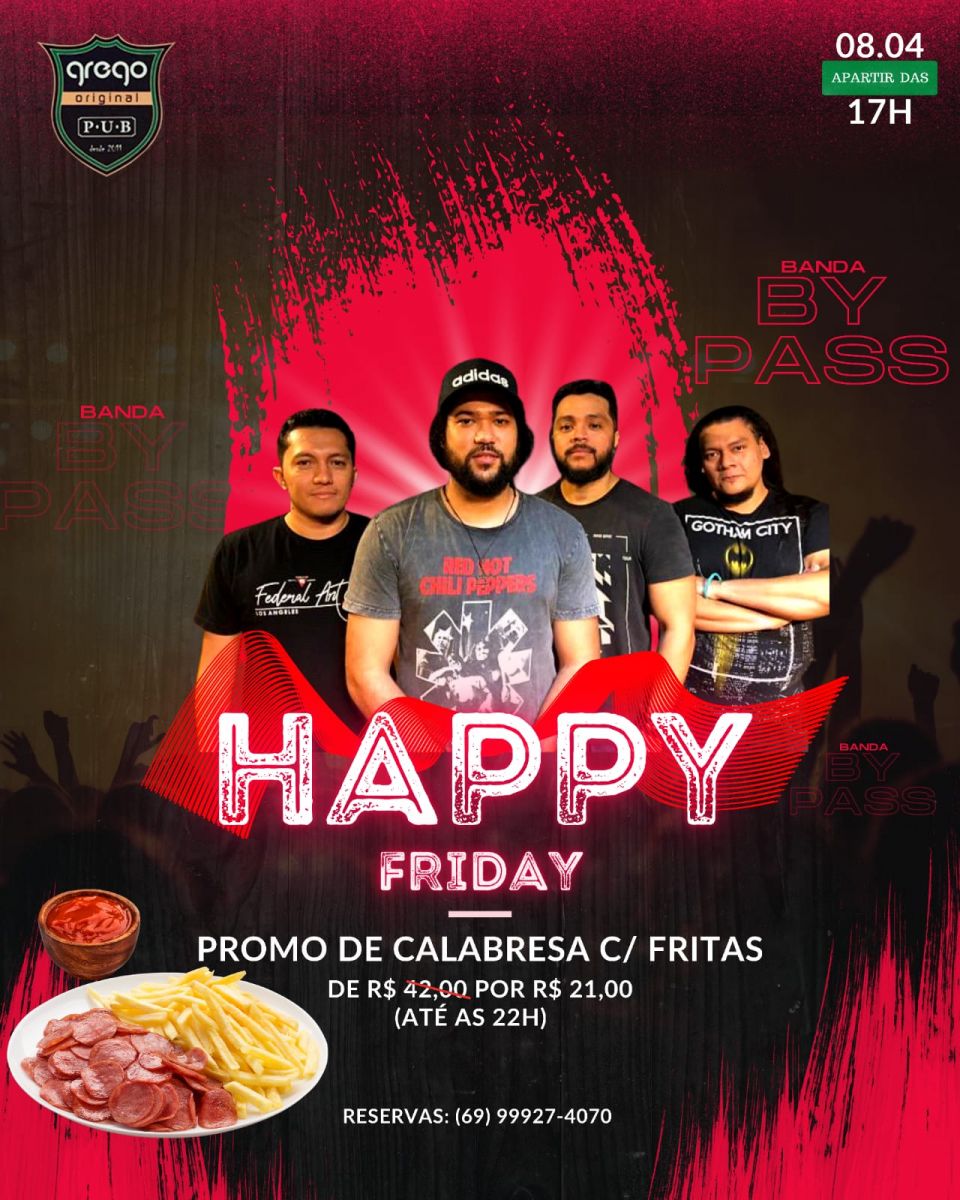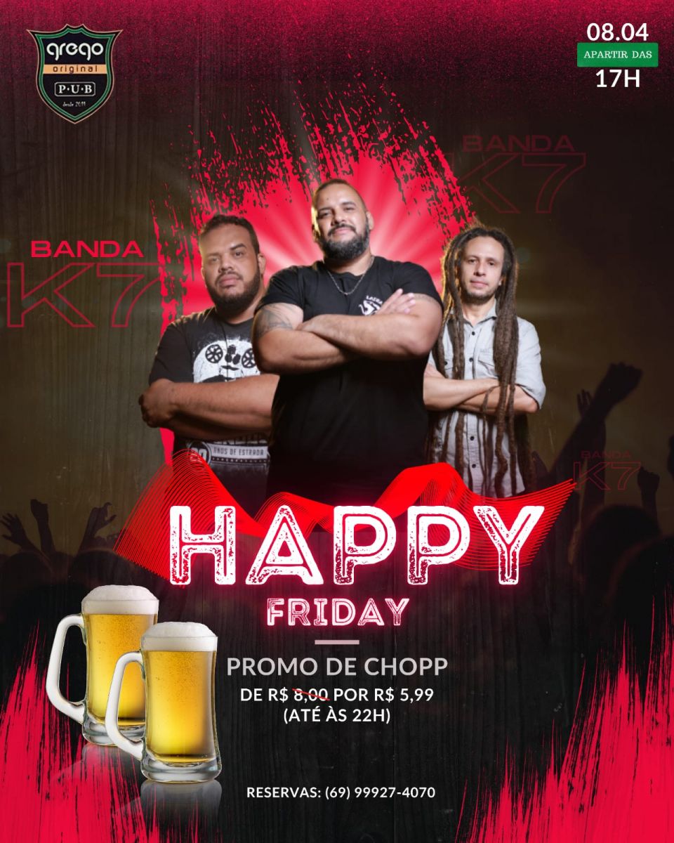 Além da The Jack's, as bandas Bypass e K7, serão as atrações desta Happy Friday, que começa a partir das 17h, com promoção de petiscos e chopp.