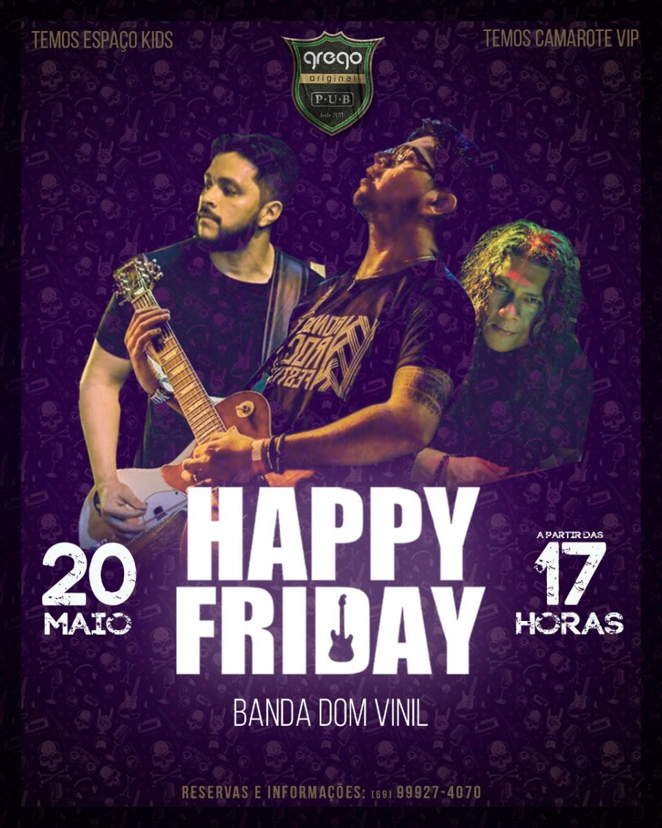 Todas as sextas, a partir das 17h, é dia do evento músical "Happy Friday", da premiada casa de rock, o Grego Original, com mais de 10 anos de tradição na capital rondoniense.
