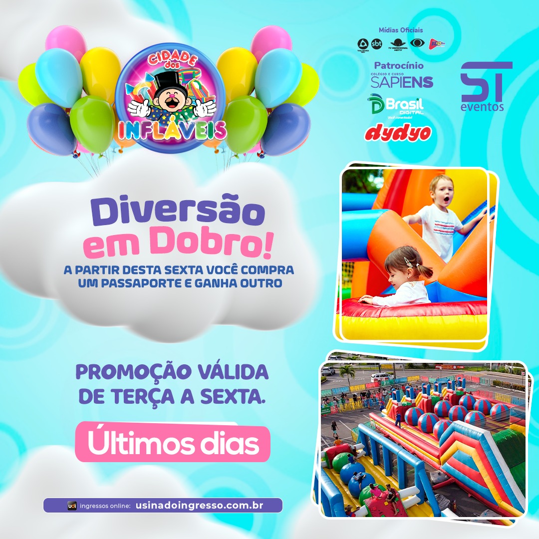 ST Eventos sorteou 5 passaportes para os internautas curtirem uma experiência incrível de muita diversão na Cidade dos Infláveis.