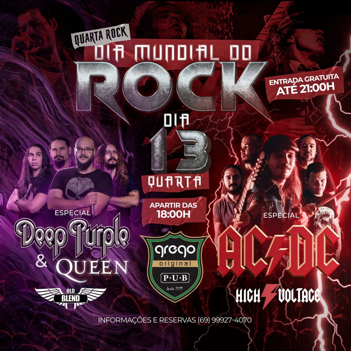 Nesta quarta-feira, dia 13, com entrada na faixa até às 21h, o premiado Pub porto-velhense, o Grego Original, vai comemorar o Dia Mundial do Rock, com show da banda Old Blend, interpretando os clássicos das bandas britânicas Deep Purple e Queen.