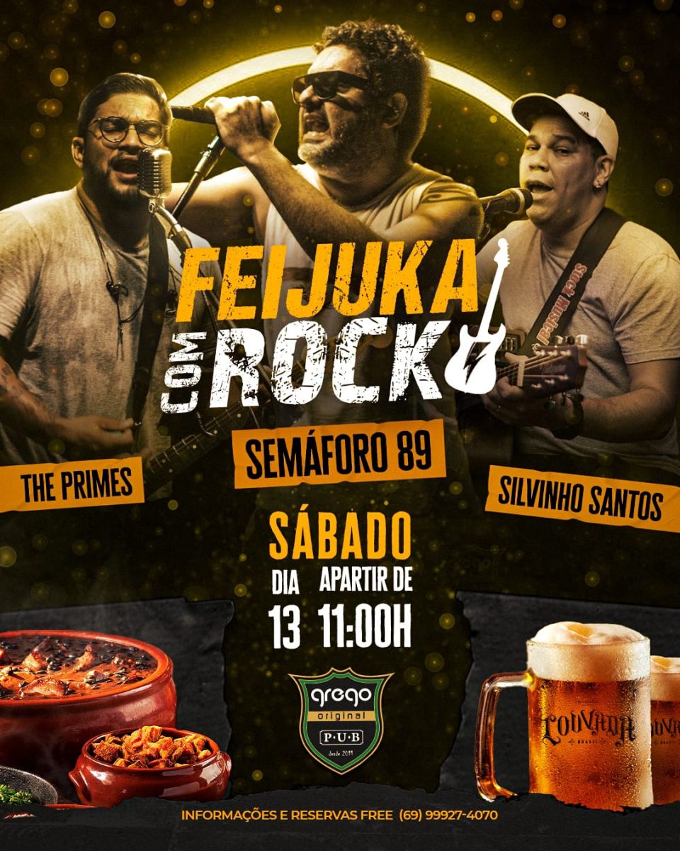 Além da feijoada, o prato principal do dia, tem outras opções no cardápio da casa de rock, entre eles, pratos executivos de carne de sol, filé, picanha e peixes, dourado e tambaqui sem espinha, que você pode tanto degustar no Grego quanto na sua casa, via delivery 6999206-1573.