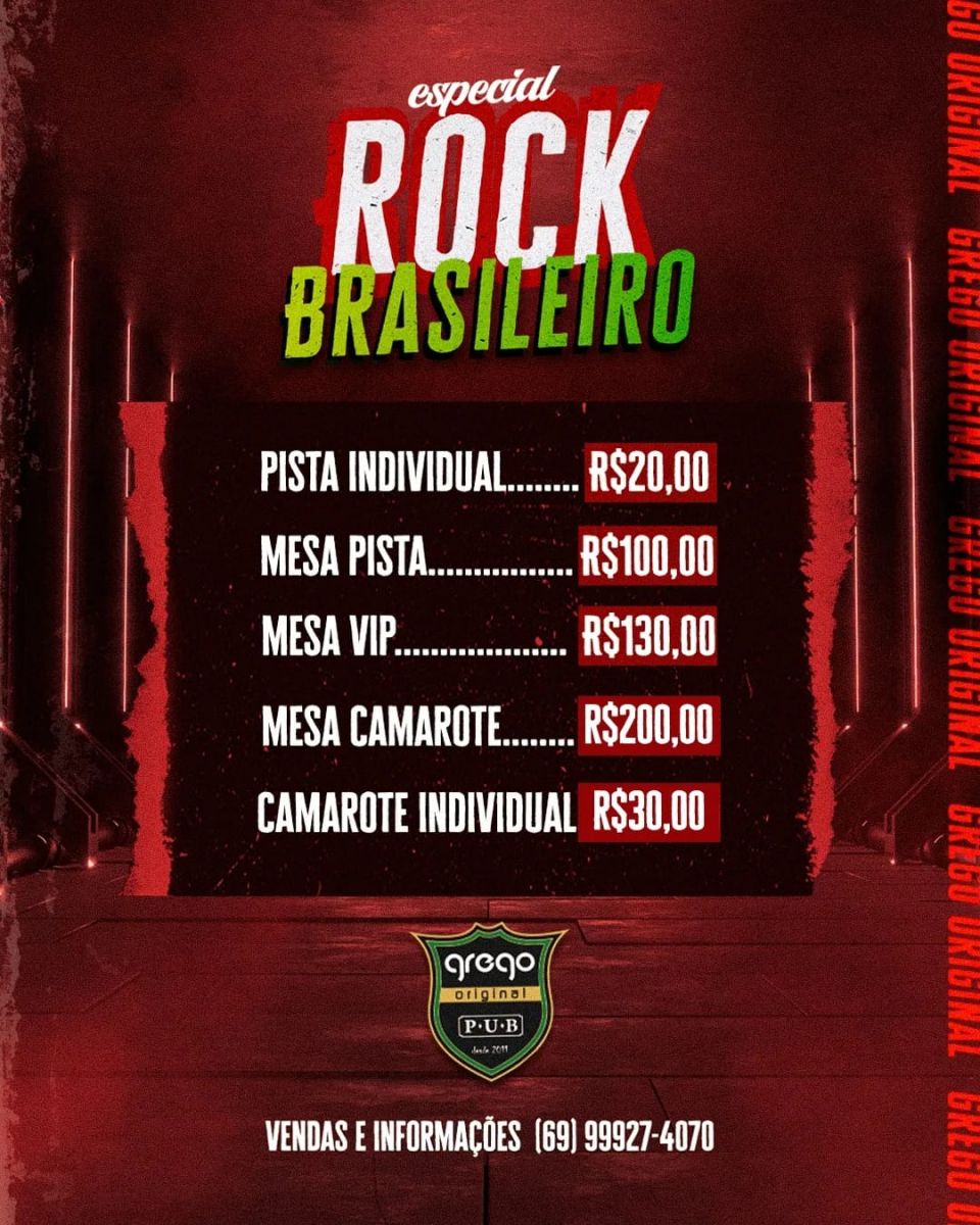 Vai rolar muito 'rock and roll' neste final de semana no premiado Pub porto-velhense, o Grego Original, entre eles, o especial "Rock Brasileiro". Se liga na agenda!!!