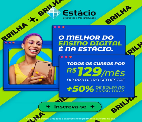 E tem mais, no primeiro semestre, todos os cursos digitais saem pelo preço de R$ 129/mês em até 50% de bolsa no curso todo.