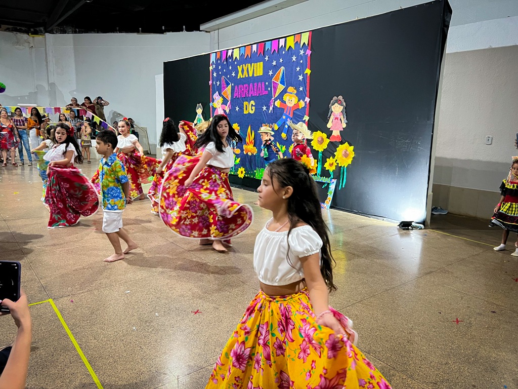 O 28° Arraial da Escola Infantil DG foi realizado na última quinta-feira (29), no Espaço Kids Forasteiro, localizado na avenida Guaporé, 2365, bairro Lagoa, decorado com bandeirinhas coloridas, balões e elementos característicos dessa festividade.