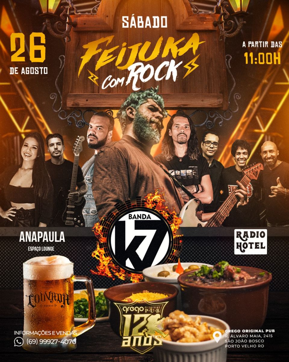 Grego Original a feijuka com rock, onde você pode curtir uma balada no sábado à tarde.