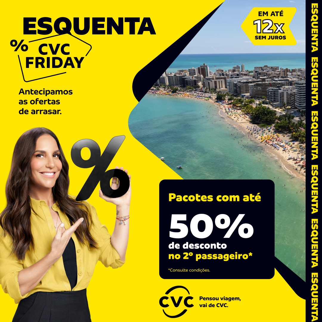 Tem hotéis, resorts, pacotes e passagens aéreas com superdesconto para destinos nacionais e internacionais. Na Esquenta da CVC Friday você tem condições especiais.