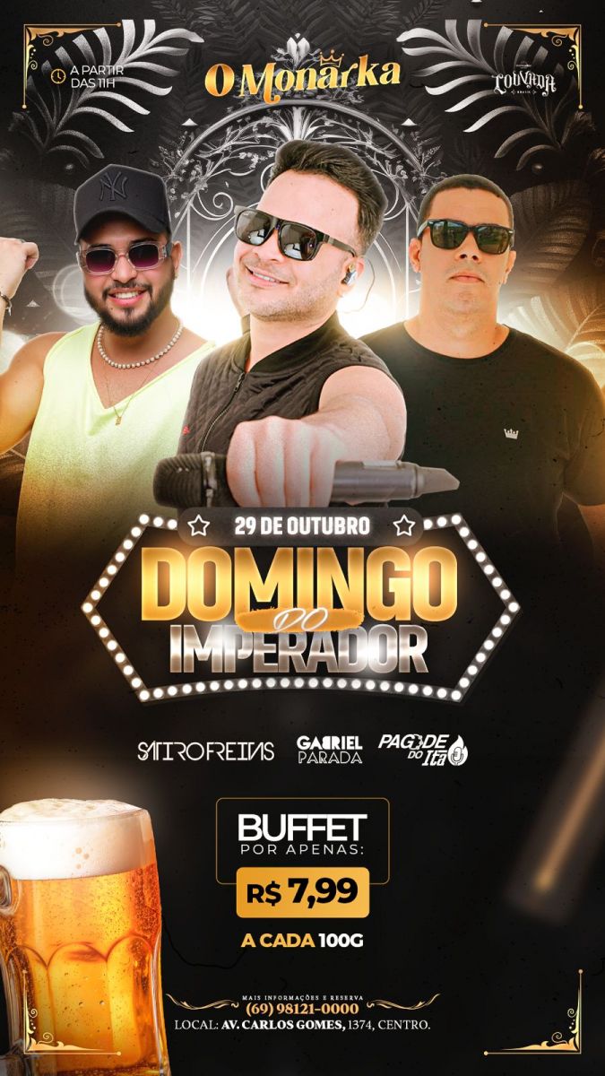 "Traga neste domingo a sua família para almoçar conosco e curtir um bom show de samba e pagode, aqui no O Monarka", convidou o empresário Sinezio Tapajós, da nova casa que é o novo conceito de entretenimento, lazer e gastronomia de alta qualidade.