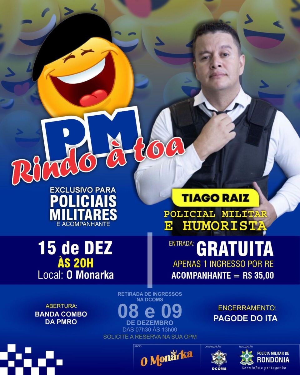 O final de semana chegou e a nova casa de shows de Porto Velho, 'O Monarka', abre suas portas hoje, dia 15, às 20h, com o stand up, "PM Rindo À Toa", com o policial militar e humorista Tiago Rais.