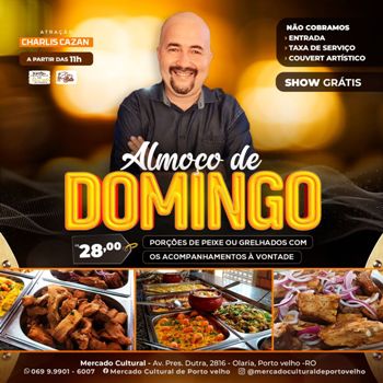 Já no domingo, os eventos começam as 7h, com show do grupo Forró Madeira, no também tradicional evento músical e gastronômico 'Café Nordestino'. Na sequência , no almoço promocional, onde a refeição custa R$ 28.00, terá show de Charlis Kazan. Às 16h, Pagode Resenha, e domingo à noite, Marcell Lobato e convidados.
