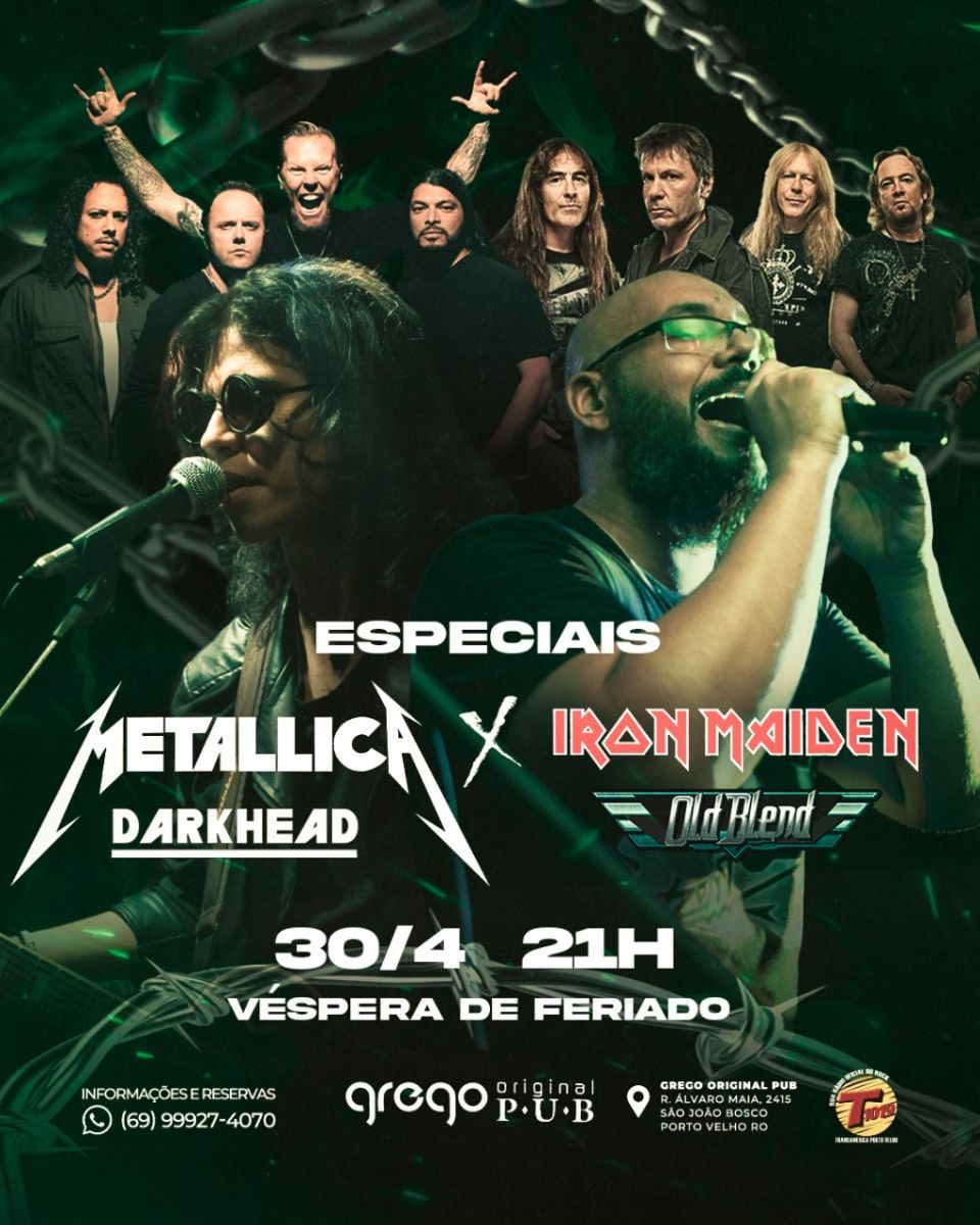 Terça feira especial por aqui! Banda Darkhead apresenta especial Metallica e banda Old Blend apresenta especial Iron Maiden. Casa aberta as 21h.