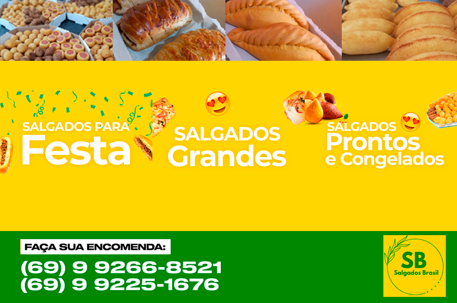Salgados Brasil são sempre uma excelente pedida. Com dois endereços em Porto Velho (RO) - uma fábrica e uma lanchonete, a Salgados Brasil faz justiça ao nome: oferece ordem na produção e progresso no sabor.