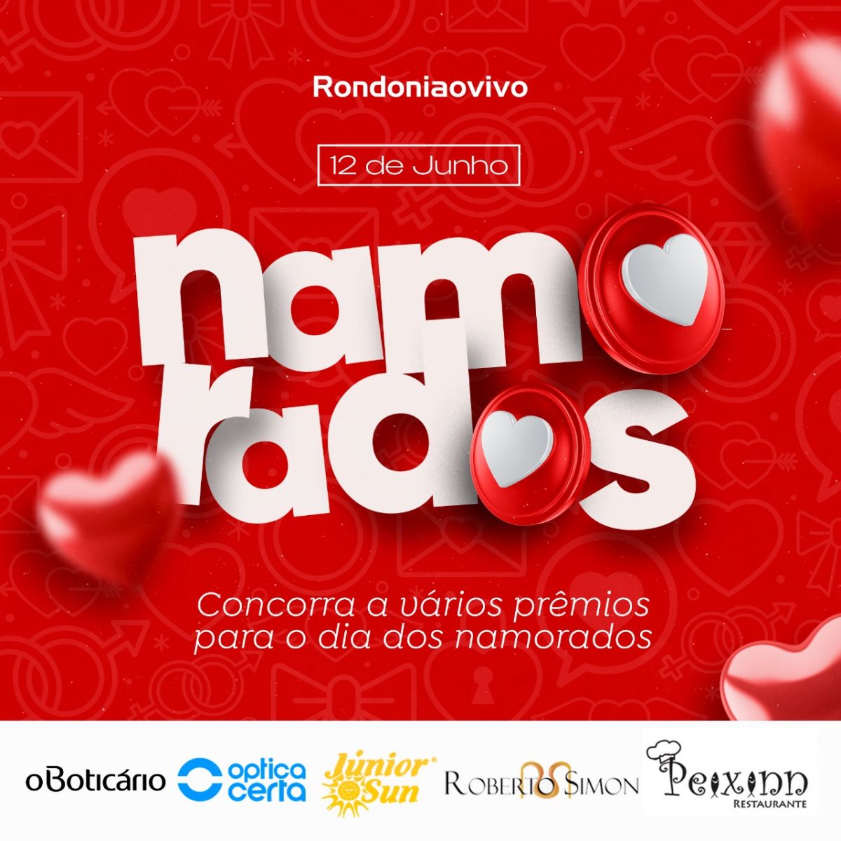 O amor está no ar! O mês mais apaixonante e que deixam os casais mais felizes chegou... Por isso, o Rondoniaovivo em parceria com grandes empresas de Porto Velho, vai fazer mais um sorteio para deixar o clima entre os namorados ainda mais emocionante.