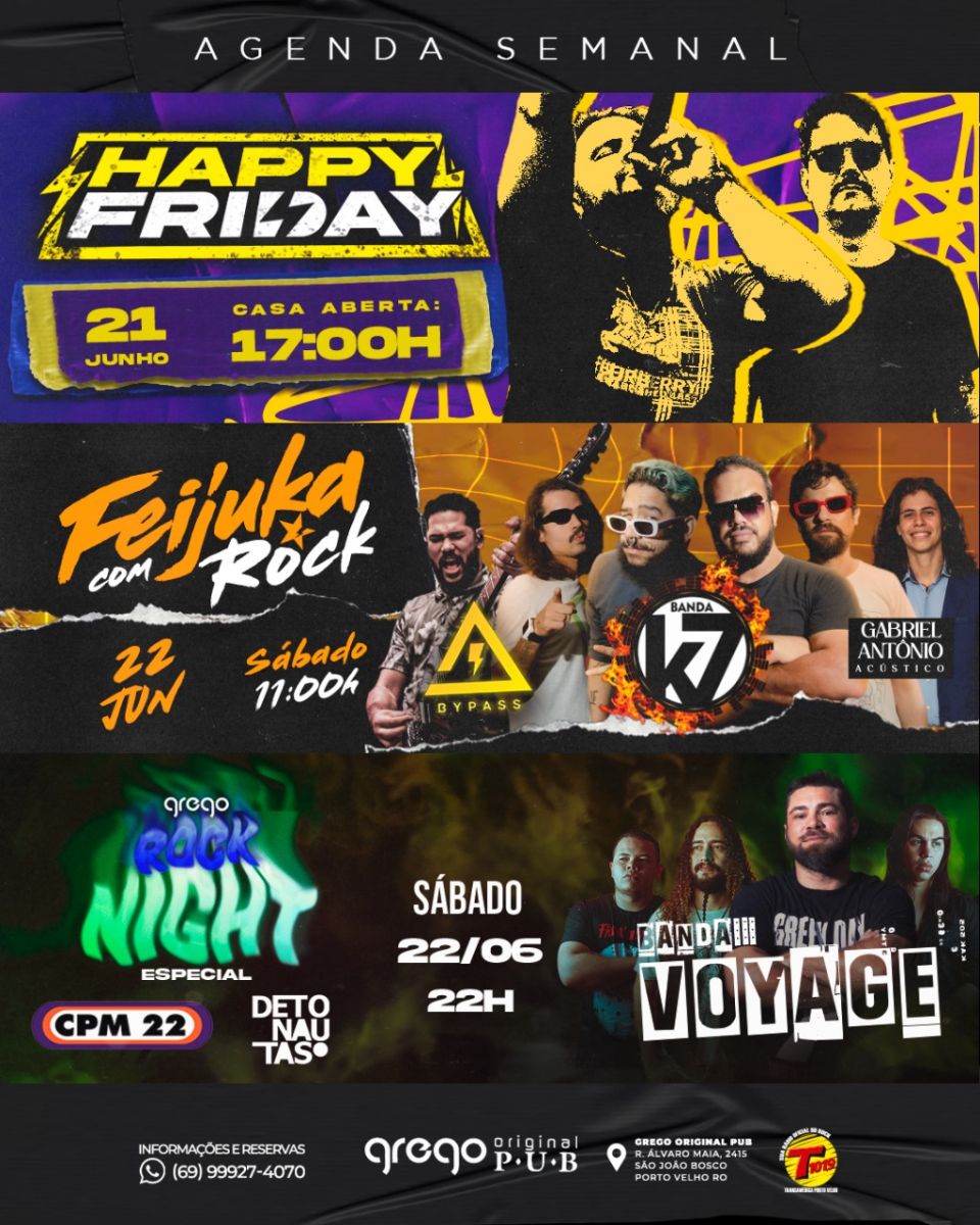 Se você curte uma balada no sábado a tarde, precisa conhecer a feijuka com rock do Grego Original: são 3 bandas garantindo a festa das 11h as 18h.