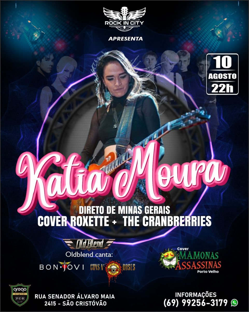 Mais uma edição Rock in City dia 10 de agosto no Grego Original Pub, a melhor casa de Rock de Porto Velho-RO. Venha curtir Kátia Moura Cover direto de Minas Gerais cantando Roxette + The Cranberries.