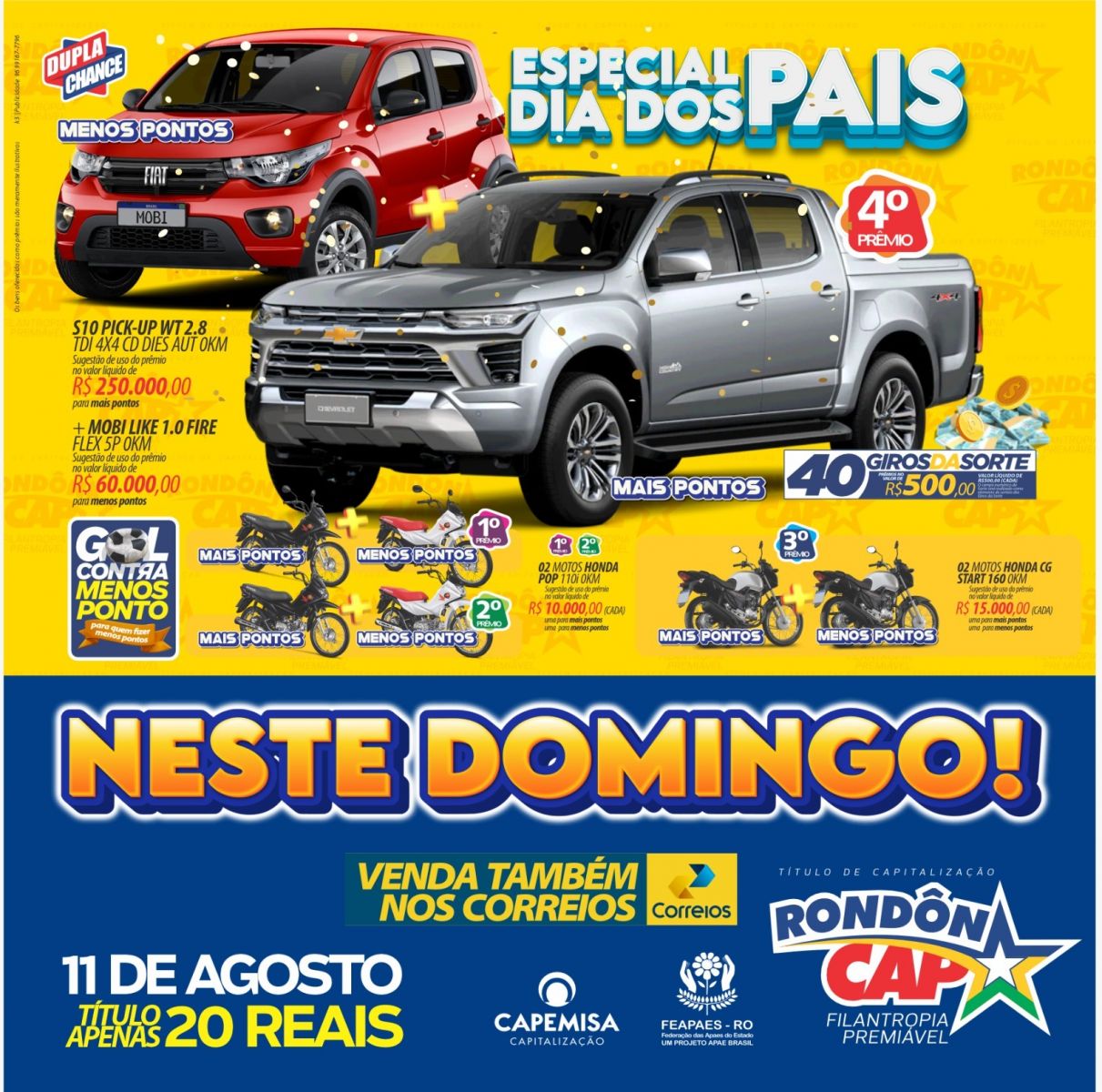 RondonCAP Especial dos Pais - serão no mínimo 48 ganhadores! Compre o seu Titulo Fisico ou Digital - ajude as Apaes, participe e boa sorte!